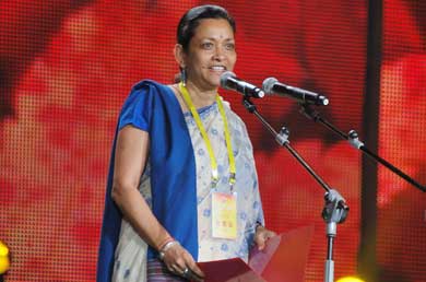 賈什瑞·阿卡里婭:十分高興, 很榮幸“閱讀空間”組織能夠因促進性別平等和掃盲活動而獲得孔子教育獎。今天在這里,在孔夫子的故里,我感到極其的榮幸,能夠代表那些為了社會下層人民和貧困人群的教育和生存技能培訓所作出巨大貢獻的所有的同事在此領獎。我想感謝此項活動的組織者能夠意識到而且重視我們所提供的大量閱讀材料和所做出的廣泛的宣傳。他們克服了種種困難,諸如當地人文環境以及學習者的種種不同需要。
