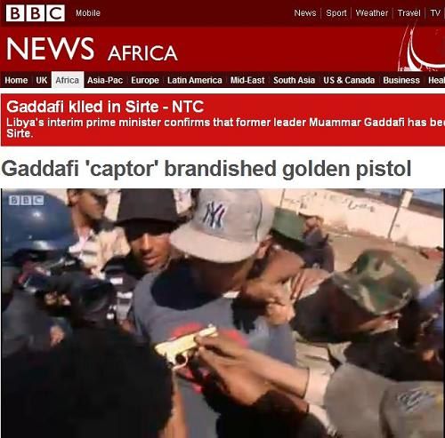據BBC報道,在卡扎菲被反對派殺死的消息之后,有一個二十多歲的年輕士兵聲稱,當時是他抓住了卡扎菲。