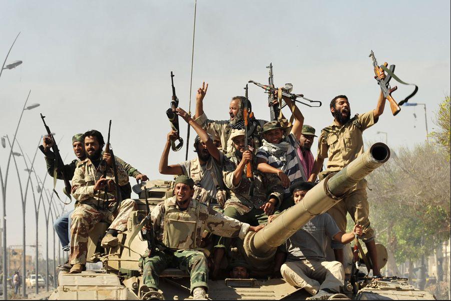 執政當局士兵在蘇爾特街頭慶祝