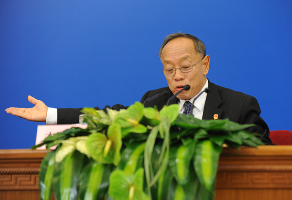 十一屆全國(guó)人大四次會(huì)議于3月4日(星期五)上午11時(shí)在人民大會(huì)堂三層金色大廳舉行新聞發(fā)布會(huì),由大會(huì)發(fā)言人就會(huì)議議程和人大工作相關(guān)的問(wèn)題回答中外記者的提問(wèn)。圖為大會(huì)發(fā)言人李肇星。翟子赫 攝