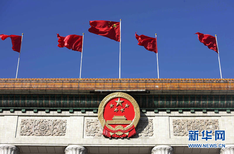 3月3日,人民大會堂紅旗飄揚。當日15時,中國人民政治協商會議第十一屆全國委員會第四次會議將在北京人民大會堂開幕。新華社記者鄭煥松攝