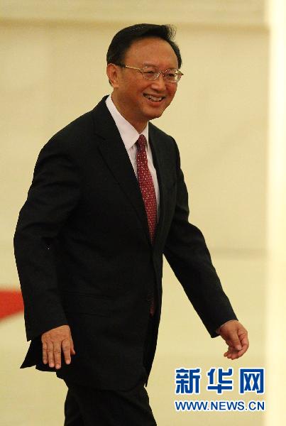 3月7日,十一屆全國人大四次會議舉行記者會,外交部部長楊潔篪答記者問。這是楊潔篪步入會場。 新華社記者陳建力攝