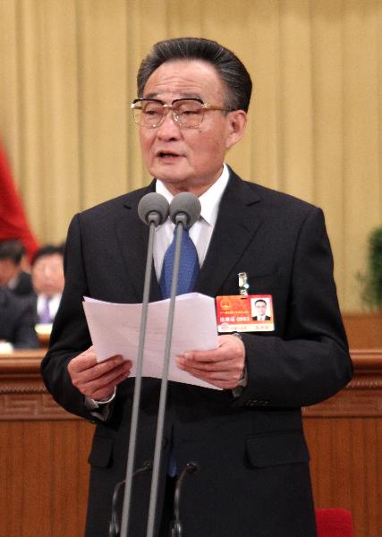 3月5日,第十一屆全國人民代表大會第四次會議在北京人民大會堂開幕。吳邦國主持會議。 新華社記者蘭紅光攝