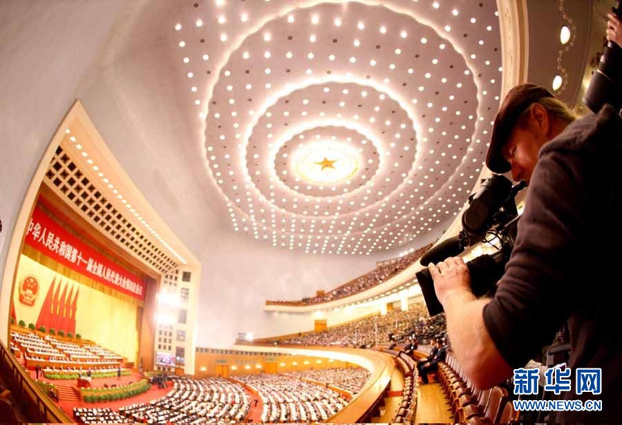 3月5日,第十一屆全國人民代表大會第四次會議在北京人民大會堂開幕。這是記者在采訪拍攝。