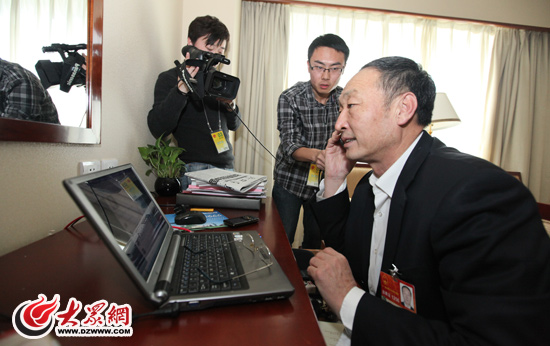 全國人大常委會委員許振超詳細詢問了博友“檸檬奶茶”所反映問題的具體情況。(特派記者 曹亮 攝)