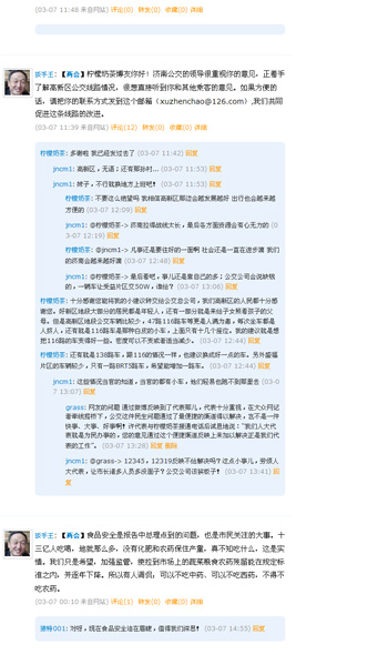 博友“檸檬奶茶”說,“濟南高新區大部分的居民都是年輕人,還有一部分就是來給子女照看孩子的父母。但是高新區地段公交車輛比較少,特別是47路、116路車等更是人滿為患,每次坐車都是人擠人。116路車是那種白皮的小車,上面座位不多。我的建議就是想把116路的車換成好一些的車型,密度可以不變或者適當減少。 ”