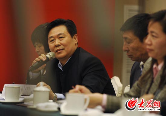 全國人大常委會委員、全國人大代表、山東大學(xué)校長徐顯明在接受記者采訪。