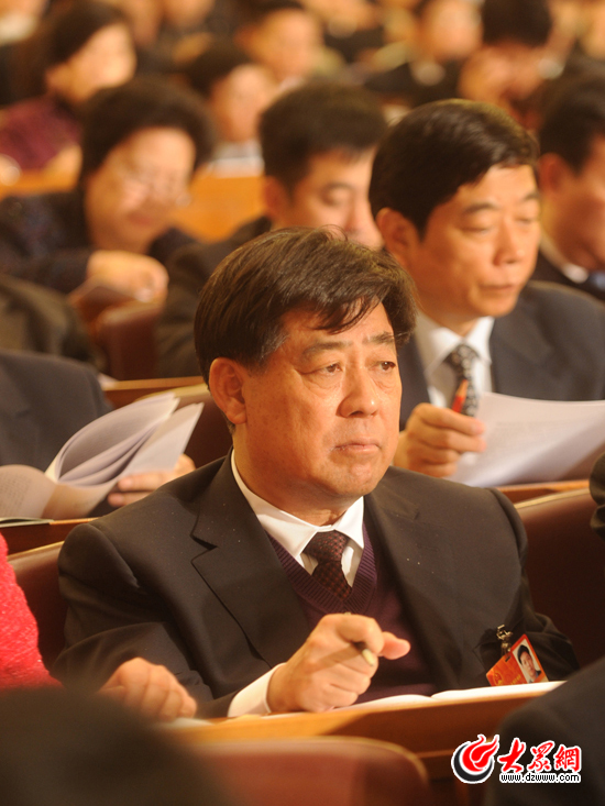 全國人大代表,三角集團董事長、總裁丁玉華認真聽取政府工作報告。