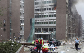 爆炸事件發生后,位于奧斯陸市中心首相辦公室、財政部和石油部大樓窗戶玻璃嚴重受損,玻璃碎片和文件灑滿街頭。挪威政府發言人稱,斯托爾...(詳細) |