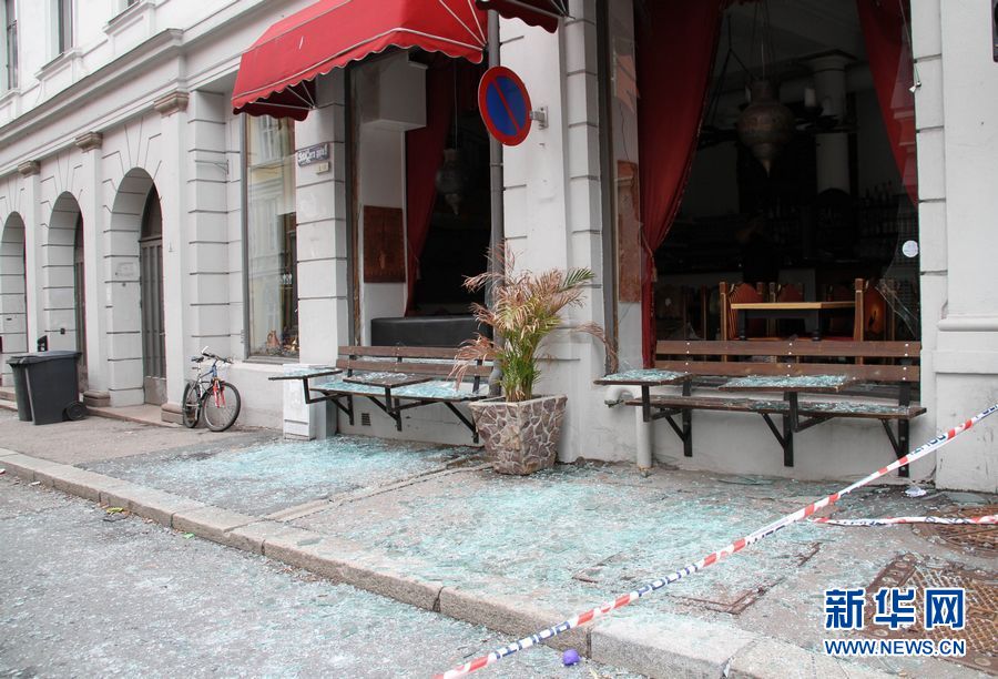 7月22日,在挪威首都奧斯陸市中心的商店玻璃被炸碎。當(dāng)日,據(jù)警方聲明,挪威首都奧斯陸發(fā)生劇烈爆炸,造成人員傷亡。 新華社記者 劉敏 攝