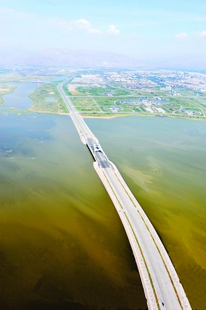 越星海湖的追月橋。