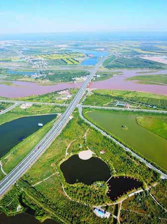 黃河之水從濱河大道走來,黃河金岸綠洲稻花飄香。