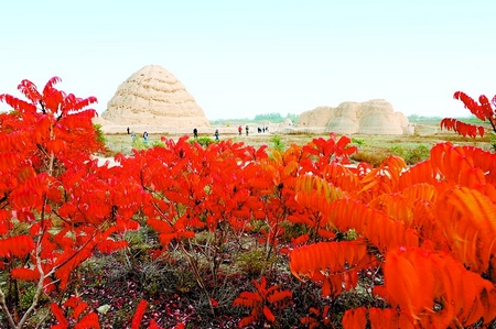 秋葉把西夏王陵映襯得愈加滄桑厚重!度嗣袢請蟆酚浾 王忠家 攝