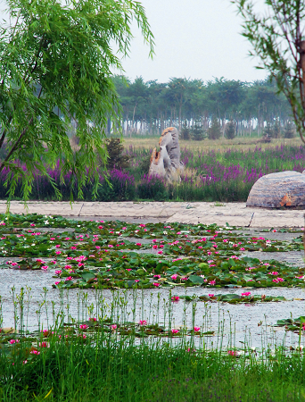 星海湖攔洪庫,是歷史上自然形成的湖泊濕地,古時它承擔著賀蘭山6條大的山洪溝的蓄洪、排洪、泄洪的任務。星海湖在綜合整治之前,常年垃圾成堆,雜草叢生,蚊蠅肆虐,泥沙淤積,成為工業排放粉煤灰和煤矸石地場地。如今的星海湖,已恢復濕地自然保護區面積43平方公里,形成常年性水域面積23平方公里,建設防洪堤100多公里。星海湖成為集攔洪、蓄水、調節氣候、生態園林景觀為一體的城市標志性工程,是煤城環境整治的經典之筆。當地講解員告訴記者:“過去都是一些污水橫流的濕地和小湖泊,現在這里既可以觀光,也可以垂釣,還舉辦過全國摩托艇錦標賽等大型賽事。”