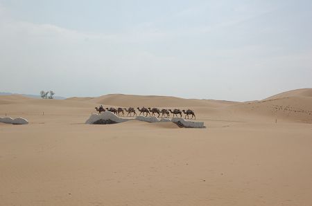 當(dāng)然,沙坡頭的驚人舉動(dòng),還數(shù)治沙科技工作者和勞動(dòng)人民向沙漠的挑戰(zhàn)。治沙成果成了人們熱愛(ài)生活、保護(hù)環(huán)境和與沙漠斗爭(zhēng)的典范,如今由治沙成果引發(fā)的環(huán)保之旅已蔚然成風(fēng),到那里一游,真正能感受到人進(jìn)沙退的偉大奇跡。