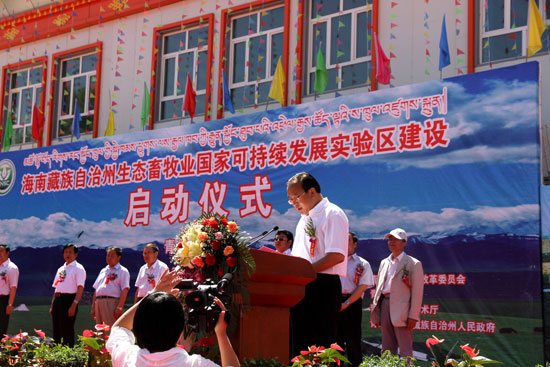 [提要] 8月7日, 在海南藏族自治州貴德縣召開的海南藏族自治州生態畜牧業國家可持續發展實驗區建設啟動大會上,省委副書記王建軍宣布:青海省海南藏族自治州生態畜牧業國家可持續發展實驗區建設正式啟動。