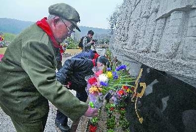 老戰斗英雄們為先烈敬獻鮮花。