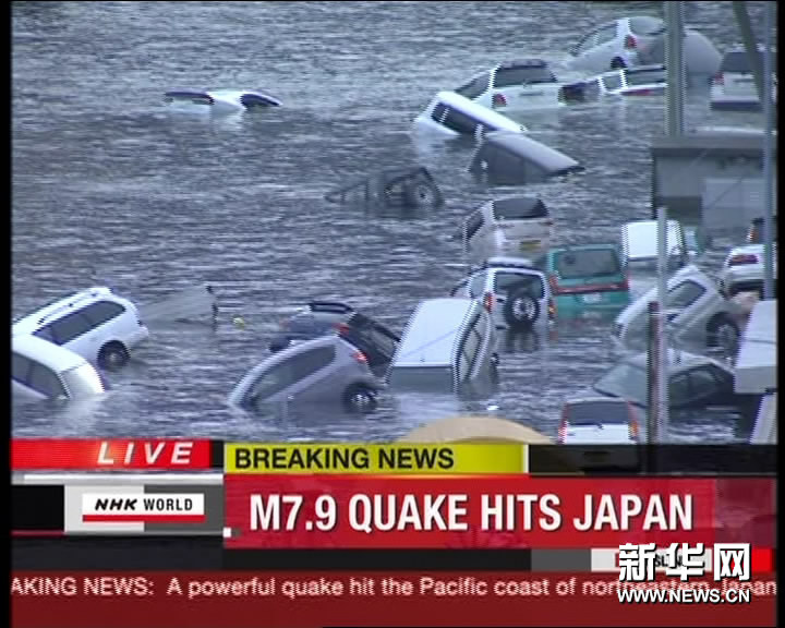 日本電視媒體一直在播放海嘯的畫面,有的地方的停車場已經把車沖到海底,大浪險些傾覆海上的漁船,情況危急。日本電臺在滾動播報地震的實況,電視上專家在進行訪談節目,稱這是日本最大級的地震,預計一個月內還會有海嘯和余震。現在,我們在車里也感覺到多次余震。