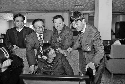 15日上午,在濟(jì)南青年公園街道辦事處管區(qū)的一家網(wǎng)吧,政協(xié)委員李鋼、李長(zhǎng)寧、王仁華和李玉華(后排從右到左)進(jìn)行調(diào)研。 本報(bào)記者 王媛 攝