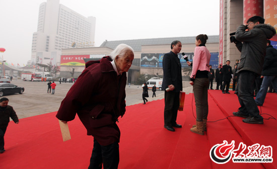 上午九時(shí)前,出席山東省政協(xié)十屆四次會(huì)議的委員開始步入大會(huì)會(huì)場。此時(shí),山東會(huì)堂前停下了一輛黑色轎車,稍后轎車的右后門輕輕打開,沒想到,從車上走下了一位滿頭白發(fā)的老者。當(dāng)她輕輕地走下車來時(shí),車上下來的工作人員緊忙上前攙扶,而卻被她宛然拒絕了。