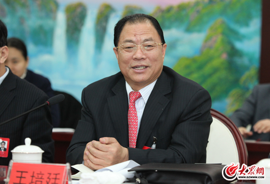 2月13日,威海市委書記王培廷在分組審議政府工作報告中談惠民生問題。