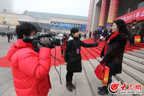 2月11日,山東省政協十屆四次會議在濟南開幕。圖為大眾網記者采訪省政協委員陳媛。