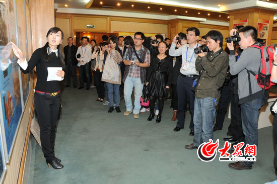 在“嶄新格局”中,通過一幅幅彩色展板,記者看到了一張承載著厚重歷史大報在新時期的飛速發展:現在的大眾報業集團已成為擁有14報5刊和1個以山東重點門戶網站大眾網為龍頭的網站群的大型媒體航母群。2010年,集團提出了“挺進全國報業五強,躋身傳媒第一方陣”的階段性發展目標,目前,大眾報業集團提出了“雙百四強”的發展目標:資產過百億,總收入過百億;整體實力進入全國報業四強。“這就是我們即將落成的傳媒大廈。”目前正在建的山東傳媒大廈模型吸引了眾多記者的目光。這個地處濟南“黃金地段”、集多種現代化功能與一體的新大廈,讓不少媒體記者流露出“艷羨”的表情。