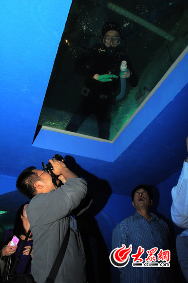 大眾網青島10月22日訊(記者 孫雯麗 曹亮)“沒看過海底世界,別說您到過青島。”如今, 青島海底世界已經成為青島乃至中國最具代表性的海洋旅游文化景區。今天下午,“文化強省看山東——第七屆中國網媒體山東行”大型采訪團的記者們就來到這里,開始了夢幻神奇的藍色海洋之旅。世界上最大的單體亞克力圓柱展缸、世界上館藏最為豐富的海洋生物標本館以及國內首家采用180度常規視窗、254度大視窗和360度圓柱視窗等多種形式相結合的海底隧道等,都深深吸引了采訪團的記者們,大家贊嘆不已。