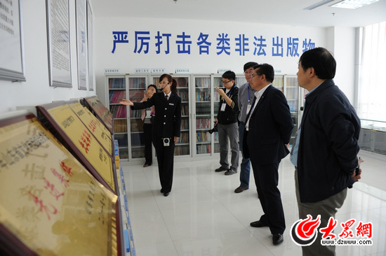 [提要] 今天下午,“文化強省看山東——第七屆中國網絡媒體山東行”采訪團走進臨沂市文化市場管理執法局,這個整合三方力量而成的文化市場執法部門,開創了全國文化綜合執法的新模式,變原來的多部門管理為一個部門綜合管理,關口前移形成合力,手指成拳出擊有力。