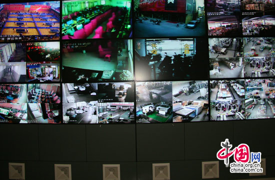臨沂市文化市場管理監(jiān)控指揮中心提升技術監(jiān)控軟件功能,建立了LCD液晶電視墻,實現(xiàn)了在對網(wǎng)吧實時監(jiān)控的基礎上,對娛樂場所、演出經(jīng)營單位、印刷復制企業(yè)、出版物發(fā)行單位的全方位全時段監(jiān)控。中國網(wǎng) 傅陽 攝
