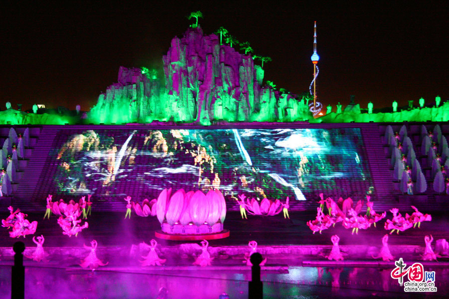 大型水上實景歌舞《蒙山沂水》拉開演出序幕。中國網 傅陽 攝