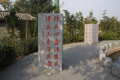 1700多年前,正是蒙山沂水孕育了一代書圣王羲之。書法廣場中,王羲之的蘭亭序、顏真卿的祭侄文稿、蘇軾的寒食詩,以及啟功、歐陽中石等中國當代著名書畫家的作品,一一鐫刻在廣場的石碑上。