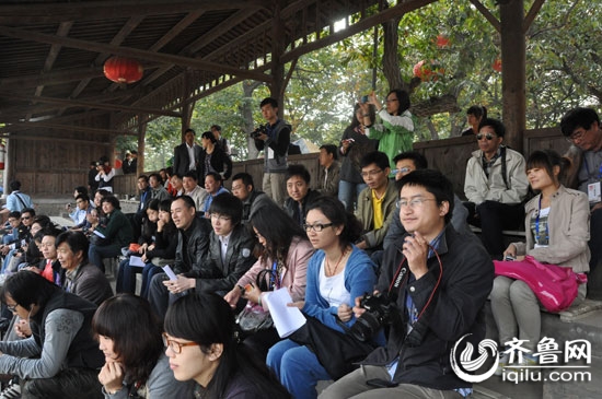 齊魯網(wǎng)10月20日訊 今天上午,第七屆全國網(wǎng)絡媒體行的記者來到了位于臨沂近郊的國際影視城進行采訪參觀。竹樓木舍、小橋流水,影視城內(nèi)頗具古典氣息的建筑讓人眼前一亮。隨后,記者們來到園區(qū)內(nèi)的中心廣場觀看了氣功與特技表演。