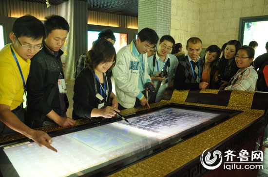 齊魯網(wǎng)10月19日訊 今天下午,第七屆全國(guó)網(wǎng)絡(luò)媒體山東行得記者來到了臨沂市規(guī)劃展覽館進(jìn)行參觀。整座展覽館透過聲光電等現(xiàn)代化高科技元素,讓大家了解到了臨沂從人文、歷史、到地理、民俗等城市風(fēng)貌,展示了未來臨沂發(fā)展規(guī)劃的宏偉藍(lán)圖。網(wǎng)絡(luò)媒體的記者更親身參與互動(dòng),體驗(yàn)了執(zhí)筆寫書的揮毫之。