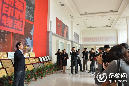 臨沂新華印刷物流集團(tuán)總經(jīng)理蘇振啟向媒體行的記者介紹公司相關(guān)情況