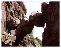 位于泰山瞻魯臺(tái)西側(cè),兩崖對(duì)峙,下為深澗,上有三塊巨石懸空累迭,連通深澗,其狀如橋,名曰:“仙人橋”。寓意凡人難過(guò),唯神仙可行。仙人橋形勢(shì)險(xiǎn)要,神韻天成是泰山著名的奇景之一。