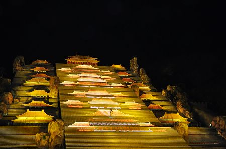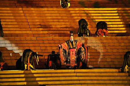 《中華泰山?封禪大典》實景演出是以古代帝王在泰山舉行的歷次封禪大典為歷史背景,依托泰山豐富深厚的自然與人文遺產,分序幕、秦、漢、唐、宋、清、尾聲7個章節,以高科技手段,糅合皇家禮儀、中華戲曲、歷朝歌舞于一體,打造出的一臺莊嚴大氣、堂堂正正和富麗堂皇的商業演出。