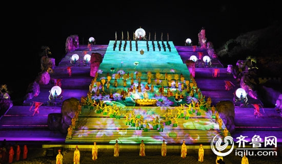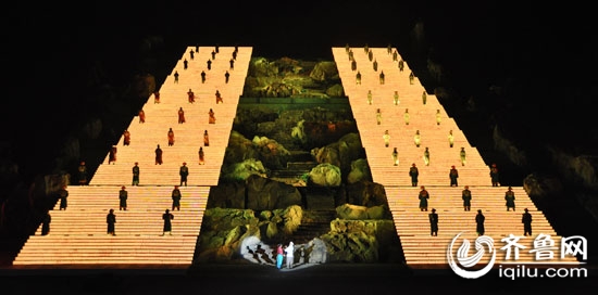 據介紹,《中華泰山·封禪大典》是山東省政府打造山東旅游精品的重點項目,由泰安市委、市政府招商引資,邀請中國大型山水實景演出創始人——梅帥元先生的制作團隊精心打造的一臺大型山水實景演出。2009年9月開始在泰山東麓天地劇場隆重上演的《中華泰山·封禪大典》,通過對封禪文化、祈;顒拥乃囆g提煉,精彩再現了泰山五朝帝王封禪場景,以泰山歷史文化為核心,以泰山自然山水為背景,充分展示泰山文化的獨特價值與精深內涵。今天上演的今年第167場。