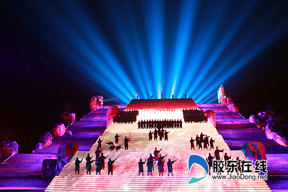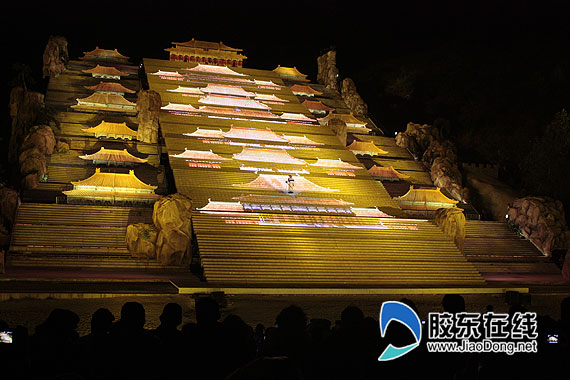 膠東在線網泰安10月18日訊(特派記者 魏琪)在結束了世紀金榜的采訪之后,18日下午,“文化強省看山東——第七屆中國網絡媒體山東行”采訪團一行又馬不停蹄的趕往泰安,一路顛簸來到了有“天下第一山”之美譽的泰山,并于當晚觀看了大型實景演出《中華泰山封禪大典》。