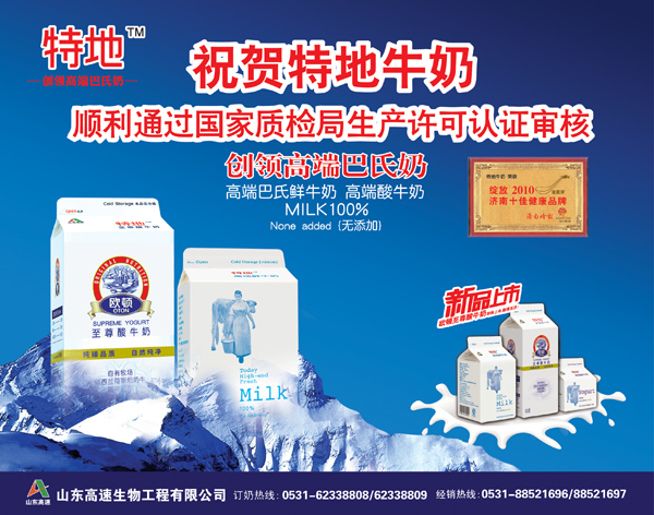 2010年,特地牛奶榮獲“綻放2010·濟南十佳健康品牌”,短信投票率、網絡投票率、專家評審三項第一,被稱為“乳品行業的一匹黑馬”。
