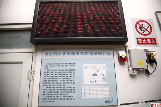 傳感器隨時傳出紡織廠生產車間內的溫濕狀況