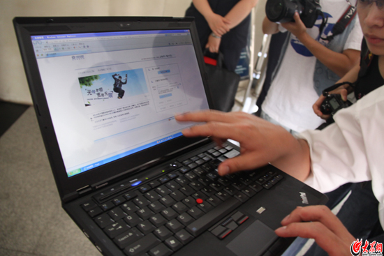 山東移動工作人員向記者演示WLAN的便捷登陸步驟