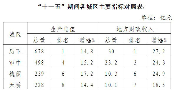 總體上看,“十一五”期間我區國民經濟和社會發展取得了顯著成績,但是與其他城區相比還存在較大差距(詳見下表)。