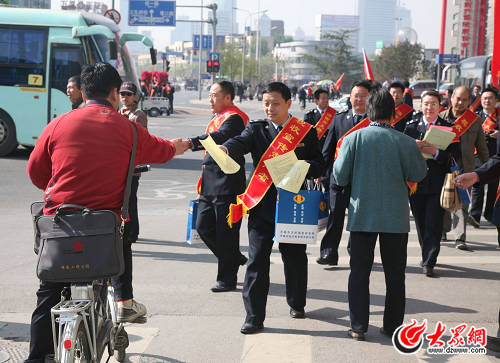 活動在濟南地方稅務局天橋分局局長徐文科作了簡短發言,并與天橋國家稅務局局長王振泉為健步走活動代表授旗后,天橋國地稅方陣人員頂著烈日和勁風按照東西南北四個方向邁開指向終點的步伐。在行進途中,隊員們高舉“青年志愿者稅收宣傳隊”的大旗分外耀眼,范圍遍布天橋區的商城、市場、廣場、汽車站、火車站、社區、學校、醫院、轄區的主干道等,邊走邊向過往群眾散發宣傳資料和稅宣拉畫筆,宣傳稅收政策和稅收知識,解答稅收政策咨詢,引得許多人駐足相問,并索取稅宣資料和稅宣拉畫筆。天橋國地稅通過借助健步走這一別開生面的新舉措,將稅收宣傳的相關知識,寓于廣大人民群眾喜聞樂見的體育載體中去,增強了稅收宣傳的群眾性、趣味性,進一步擴大了稅收宣傳的社會效應,增強了全社會依法納稅的意識;也充分展示了國地稅干部職工不怕吃苦、敢于拼搏、團結互助的精神風貌,實現了體育運動與宣傳稅收的完美結合,賦予了稅務文化的新內涵。這次活動共發放稅收宣傳資料6000余份、贈送稅宣拉畫筆1500多支,解答納稅人咨詢600余人次,真正取得了稅法知識走進老百姓的良好效果,再次掀起稅收宣傳高潮。