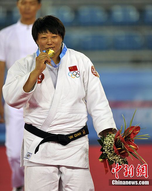 女子柔道78公斤以上級決賽秦茜衛冕 摘中國首金