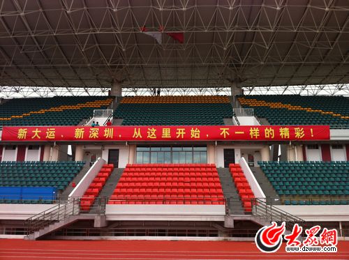 大學城體育場的看臺已經裝備一新。(李冉 攝)