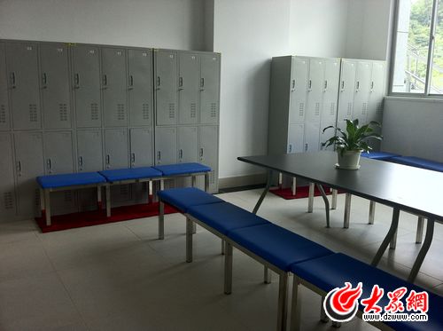 大學城體育中心體育場里面的運動員更衣室。(李冉 攝)