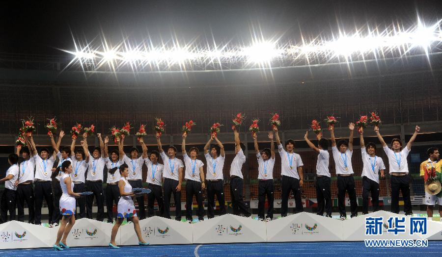 8月22日,日本隊隊員在頒獎儀式上。當日,在深圳2011第26屆世界大學生運動會男子足球冠亞軍決賽中,日本隊以2比0戰勝英國隊,奪得冠軍。新華社記者李尕攝