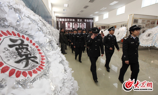 泰山南麓,哀樂聲鳴。從今天上午8:30起,泰安市全體公安民警在泰安市革命烈士陵園革命展覽館舉行悼念活動。泰安市市民及社會各界人士數千人手捧鮮花,也來到革命展覽館,深切緬懷在“1.04”襲警案件中殉職的兩名民警和一名協勤。稍后大眾網將帶來詳細報道。