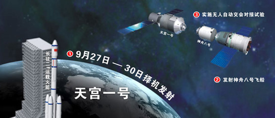 9月29日,中國在酒泉衛星發射中心用長征二號F運載火箭將天宮一號目標飛行器發射升空。 新華社記者 王建民 攝